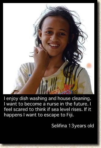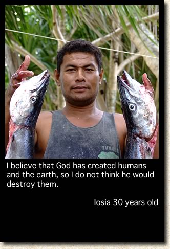 Shuuichi Endou, Tuvalu Overview's President hopes that as many people as possible come and see the faces and voices of Tuvalu and start to think about the issues that the people in Tuvalu are facing. The 10,000 Faces Project involves the photographing of every Tuvaluan's face on all the islands and the gathering each person's profile. In addition, each person is interviewed to enable the bigger and powerful countries to understand what the people of Tuvalu are going through because of global warming and climate change effects, including sea level rise etc.